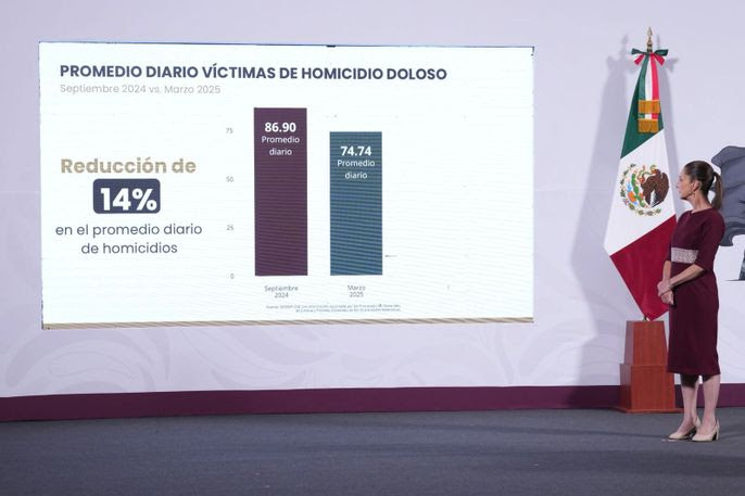 La Presidenta de México, Claudia Sheinbaum Pardo, resaltó que gracias a la Estrategia Nacional de Seguridad, en marzo de 2025 hay 12 homicidios diarios menos en el país que en septiembre de 2024.
