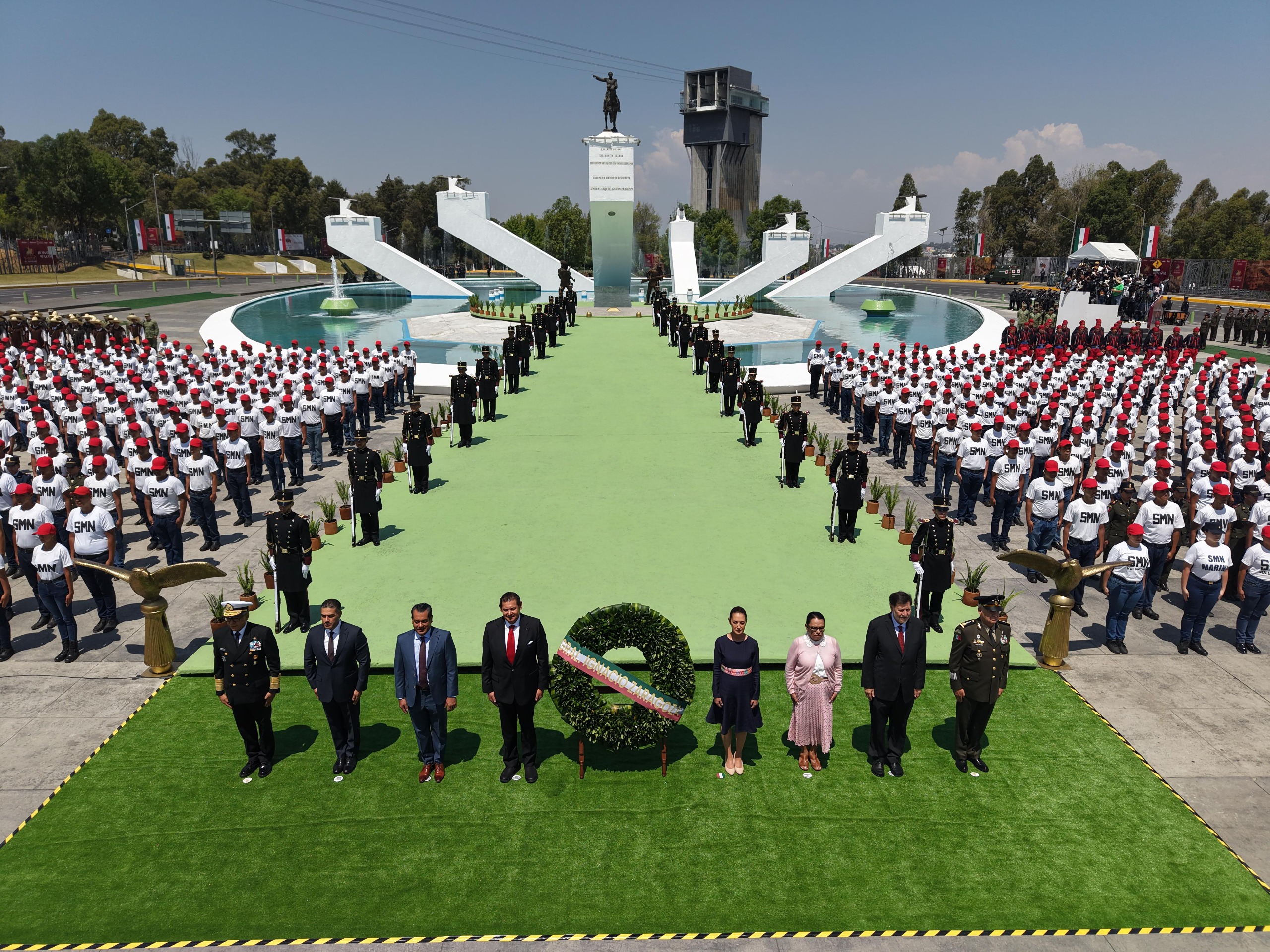 Acompañaron a la Presidenta de México, la secretaria de Gobernación, Rosa Icela Rodríguez Velázquez; el presidente de la Mesa Directiva de la Cámara de Diputados, Sergio Carlos Gutiérrez Luna; el presidente de la Mesa Directiva del Senado, Gerardo Fernández Noroña; el secretario de la Defensa Nacional, general Ricardo Trevilla Trejo; el secretario de Marina, almirante Raymundo Pedro Morales Ángeles; la Jefa de Gobierno de la Ciudad de México, Clara Brugada Molina; el secretario de Seguridad y Protección Ciudadana, Omar García Harfuch.