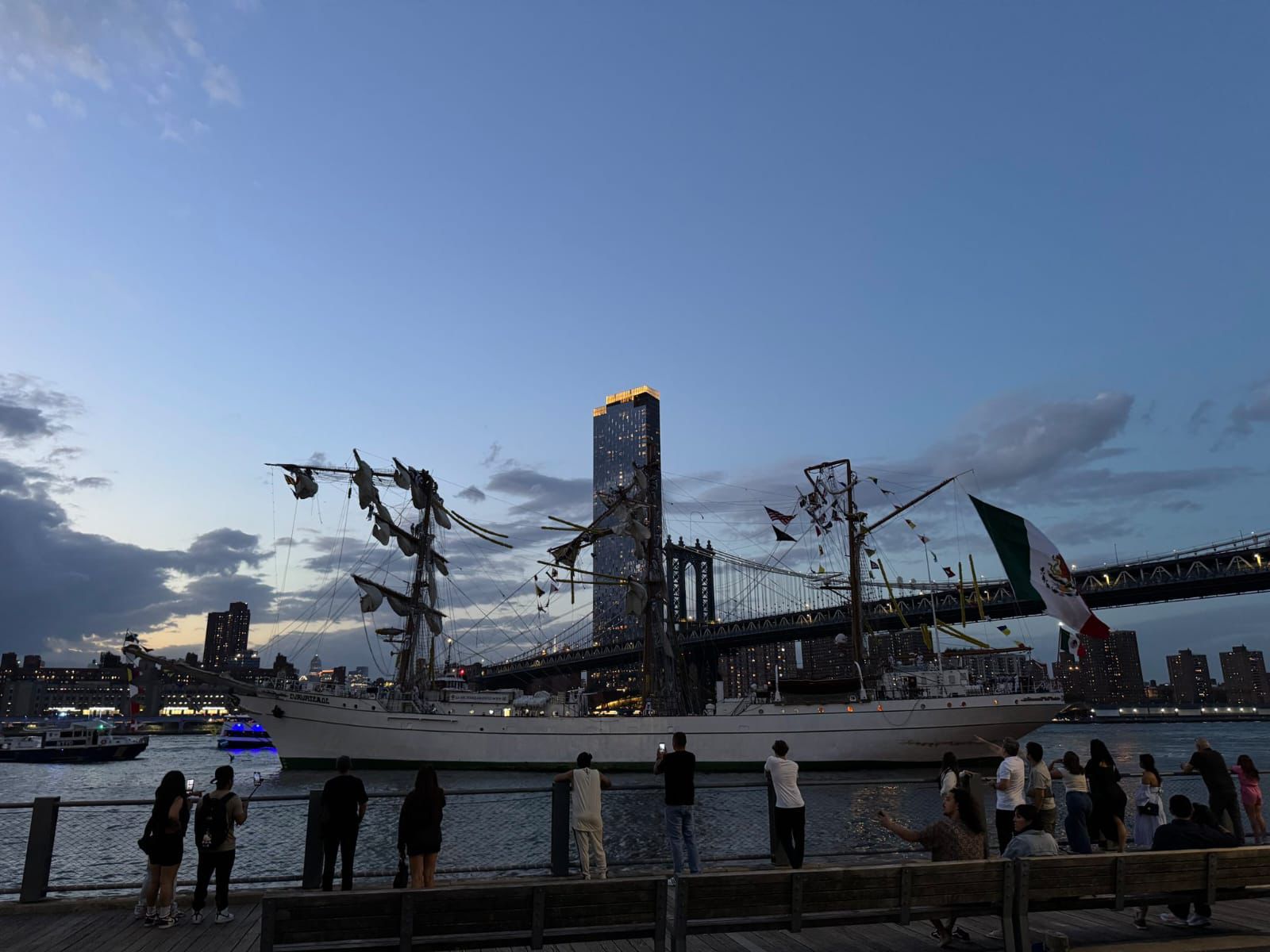 “El Velero Cuauhtémoc atraca en Nueva York, una de las ciudades más emblemáticas del mundo y sede de las Naciones Unidas. Como embajador, llega a inspirar con su mensaje de paz y buena voluntad; símbolo de un México que apuesta por el diálogo, la cooperación internacional y la cultura como puente entre naciones, porque nuestro Buque Escuela es mucho más que un barco: es el rostro amable de nuestro país, que lleva consigo los valores, el orgullo y la calidez de cada mexicano, a cada puerto que visita, informó la Semar en un tuit.