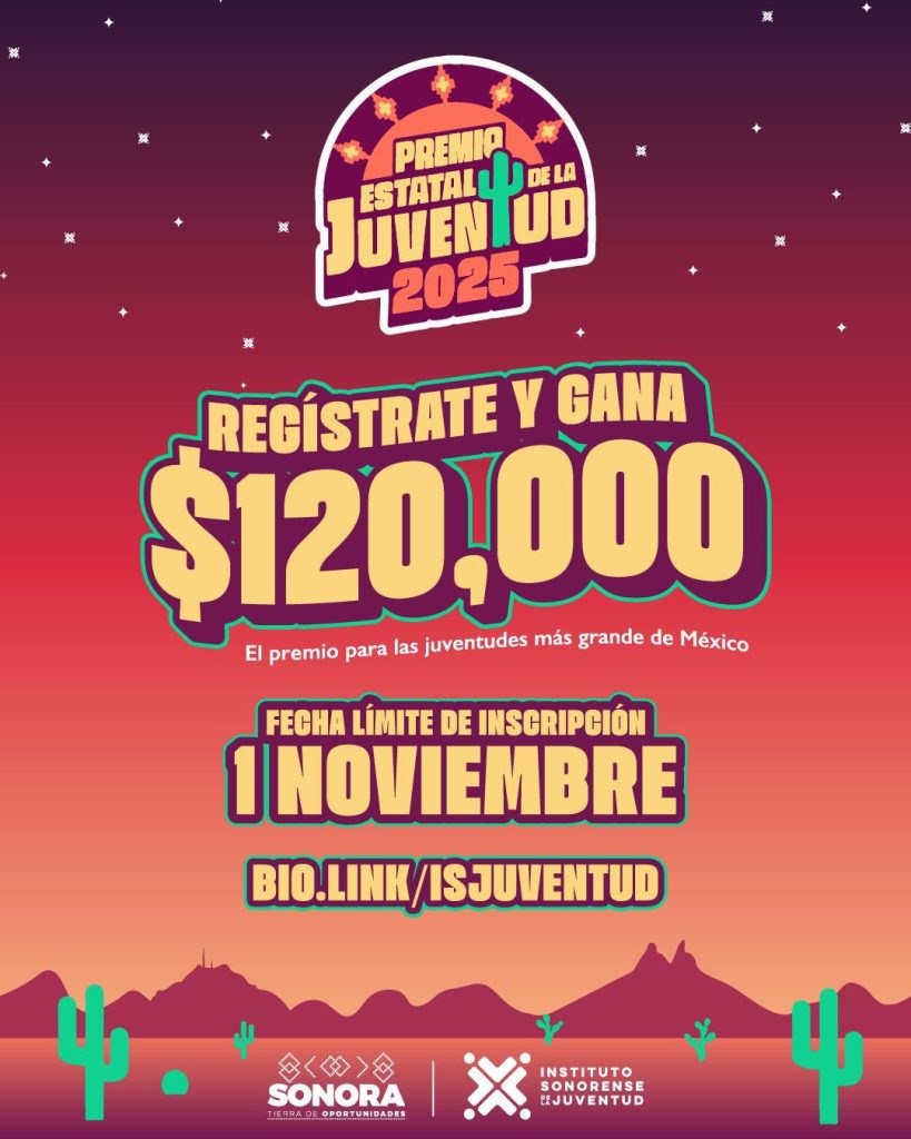 • Gracias al reconocimiento que el mandatario ha brindado al potencial de las juventudes, por primera vez en Sonora este premio otorgará el mayor monto económico de su historia, al pasar de 10 mil a 120 mil pesos en 2025, convirtiéndose en el galardón más importante del país en su tipo.