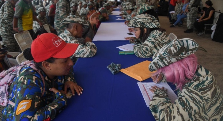 “¿Ha prestado servicio anteriormente?”, pregunta una miliciana en uniforme de camuflaje a Óscar Matheus, auditor de 66 años, quien esperó paciente en fila hasta llegar a la mesa plástica del registro e indicó a la Afp: “Estoy acá para cumplir con nuestro país”. “La patria nos hace un llamado, nos necesita el país”, expresó Rosy Paravabith, de 51 años.