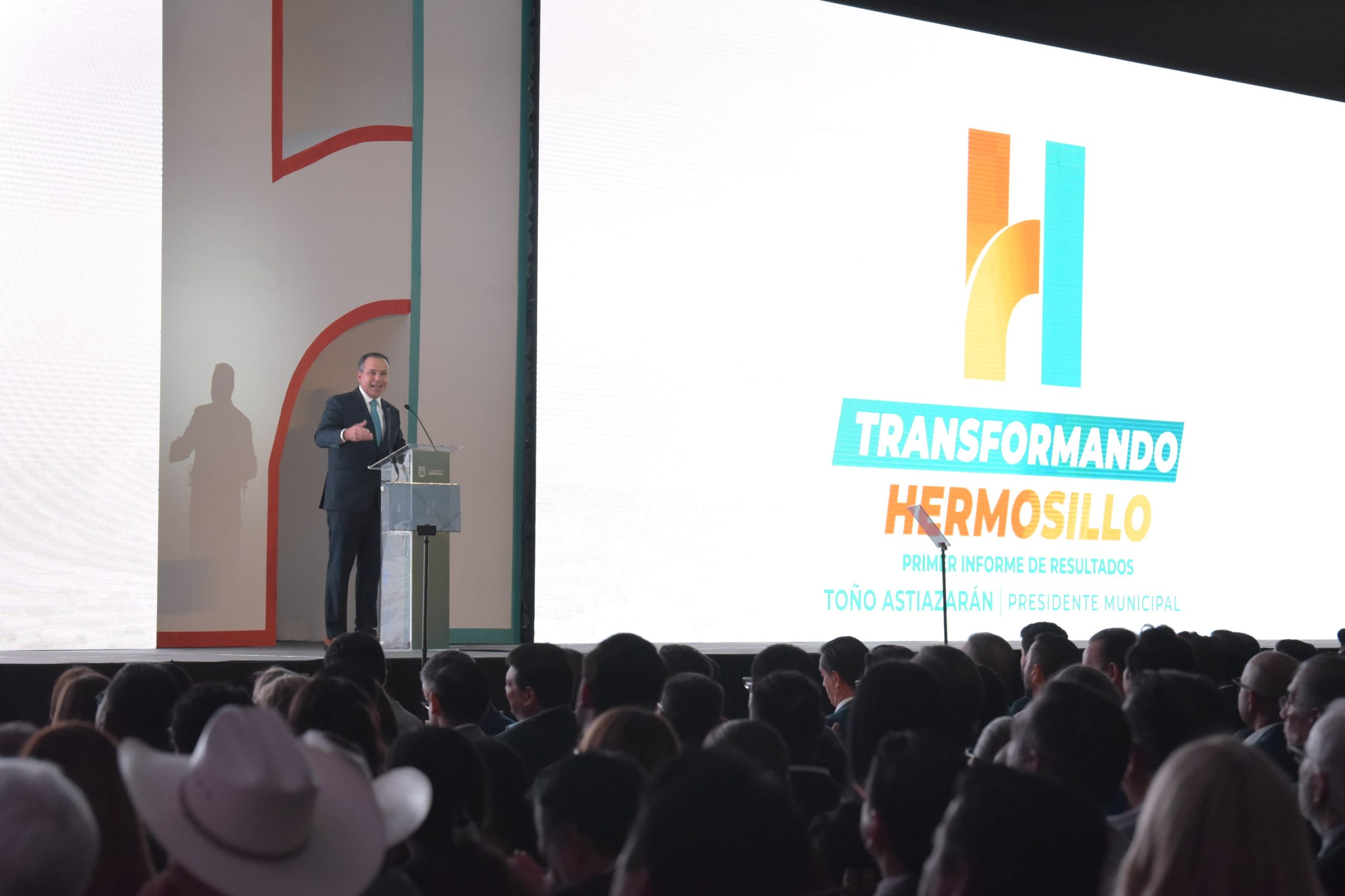 Gracias al trabajo en equipo con las y los ciudadanos, Hermosillo hoy vive una transformación que se nota y se siente, afirmó el presidente municipal de Hermosillo, Antonio “Toño” Astiazarán Gutiérrez, durante su Primer Informe de Resultados donde presentó avances en seguridad, energías limpias, agua, infraestructura y apoyo a grupos de atención prioritaria.