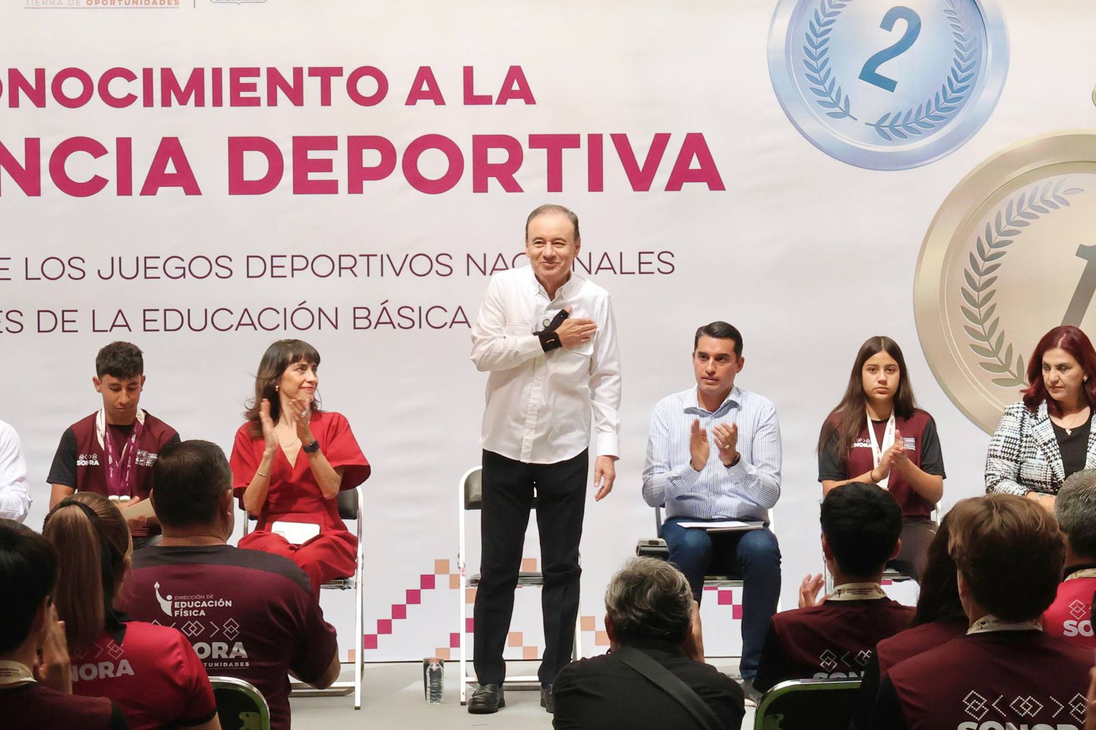 “Es un honor que nuestro estado, gracias a su esfuerzo, haya destacado a nivel nacional como un estado que cumplió las mayores expectativas de sus concursantes, de sus atletas. Yo espero que cada una, cada uno de ustedes que ya probó un pedacito de gloria con la medalla que ganaron, siga adelante, y ese pedacito de gloria que probaron se convierta en gloria nacional e internacional”, indicó el gobernador Durazo.