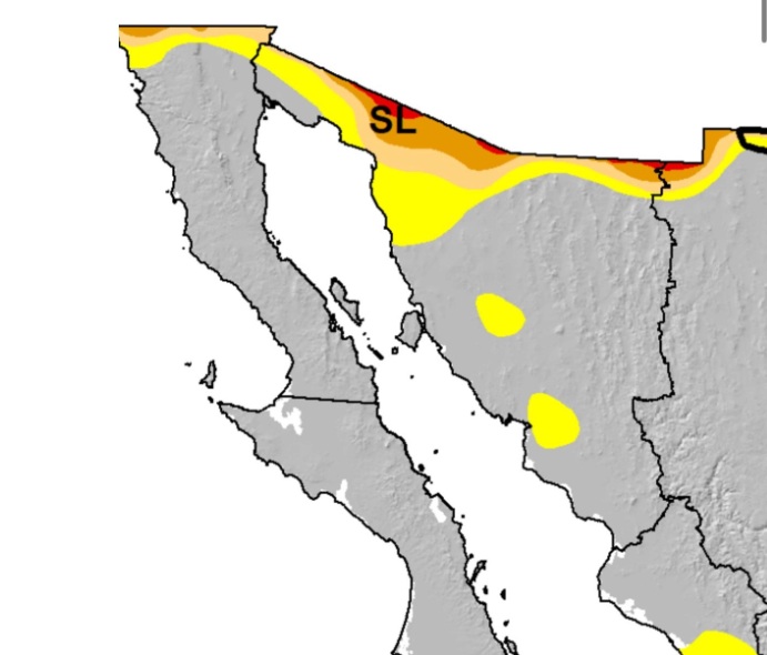 Los registros muestran que Átil, Fronteras, Magdalena, Oquitoa y Santa Cruz se encuentran en categoría D1, donde la reducción de humedad comienza a impactar actividades agrícolas y disponibilidad de agua local. En un nivel más crítico, la sequía severa (D2) se extiende sobre Altar, Caborca, Naco, Puerto Peñasco, San Luis Río Colorado y Tubutama, municipios donde la presión sobre pozos y sistemas de abastecimiento se ha incrementado desde el verano.