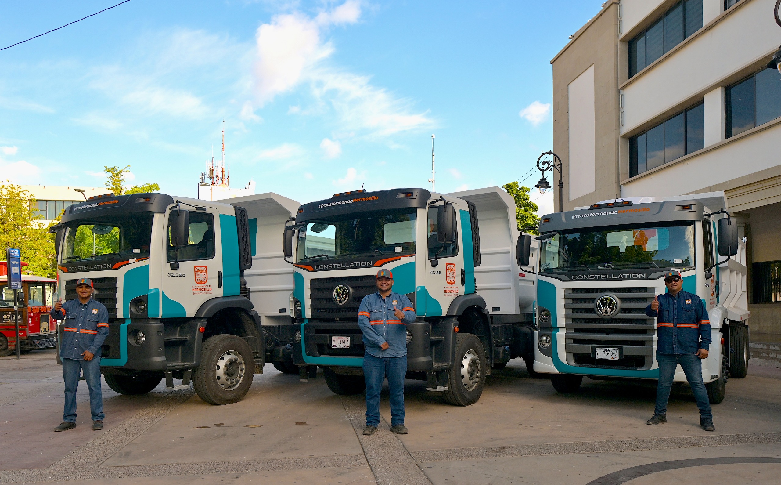 Con una inversión de 40 millones de pesos, Toño Astiazarán entregó 3 camiones tipo volteo con capacidad de 7 metros cúbicos y 4 más de 14 metros cúbicos, para la mejora constante de los servicios a la ciudadanía.