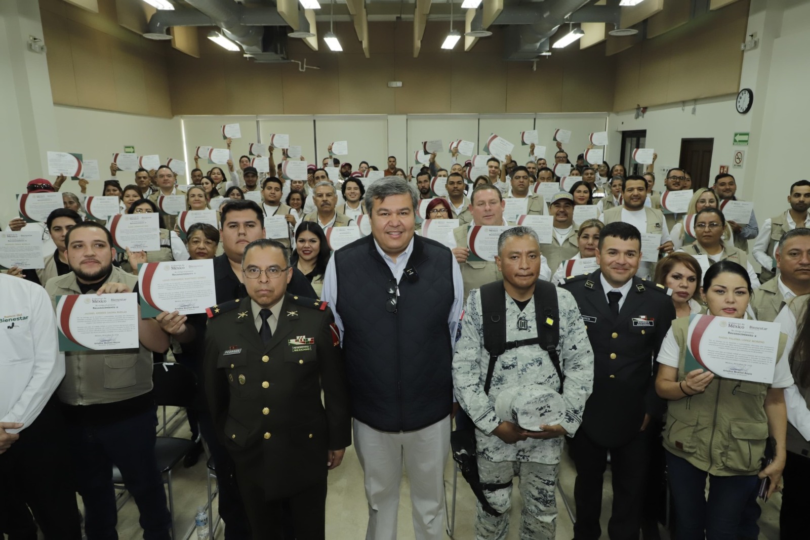 Durante el evento, el delegado de Bienestar en Sonora, Octavio Almada Palafox, destacó la vocación de servicio y el compromiso de quienes dejaron temporalmente sus hogares y familias para cumplir con la encomienda presidencial.