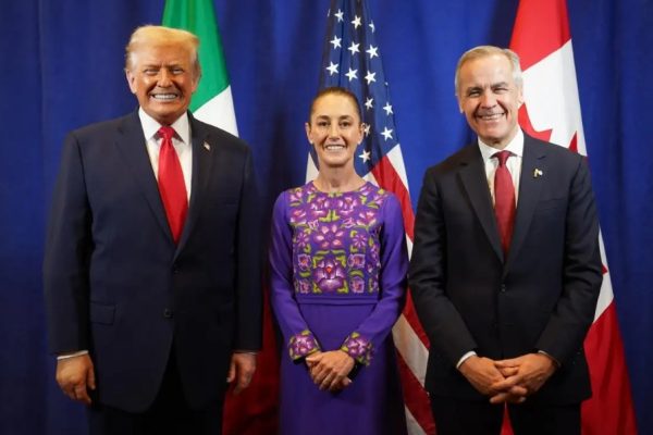 La presidenta Claudia Sheinbaum publicó un mensaje en su red social X, tras reunirse con sus homólogos de Estados Unidos, Donald Trump, de Canadá, Mark Carney. «En Washington, tuvimos una excelente reunión con el presidente de los Estados Unidos, Donald Trump, y con el primer ministro de Canadá, Mark Carney; hablamos de la gran oportunidad…
